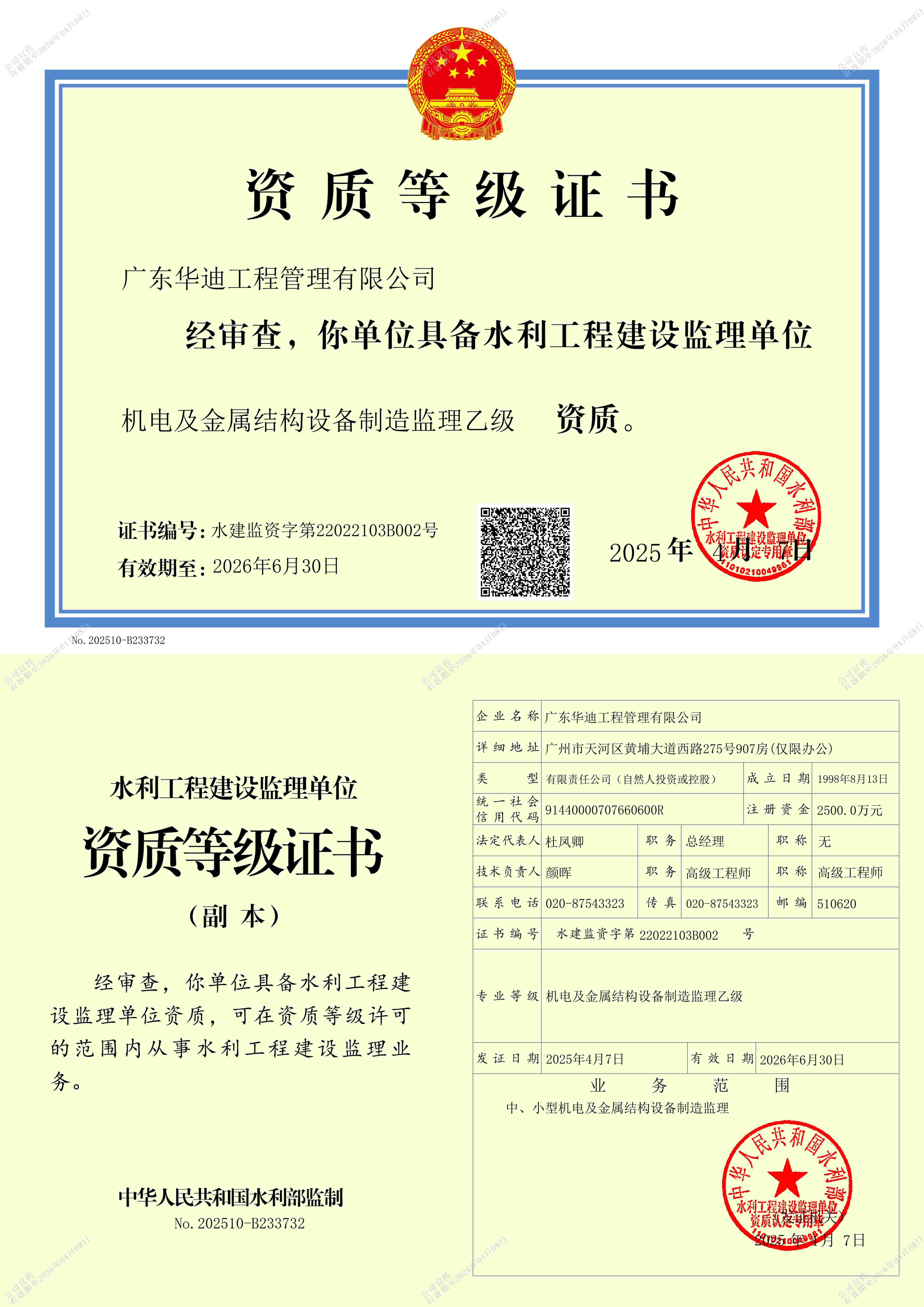 承擔所有專業(yè)工程類別建設(shè)工程項目的工程監(jiān)理業(yè)務(wù);承接各級水利工程、Ⅱ等及以下各等級水土保持工程的施工監(jiān)理業(yè)務(wù);中小型機電及金屬結(jié)構(gòu)設(shè)備制造、各類各等級水利工程建設(shè)環(huán)境保護監(jiān)理;